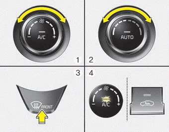 1. Select desired fan speed. 2. Select desired temperature. 3. Press the defroster
