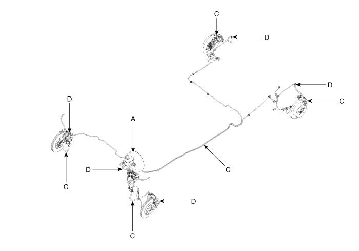 Repeat the procedure for wheel in the sequence shown below until air bubbles no longer appear in the fluid.
