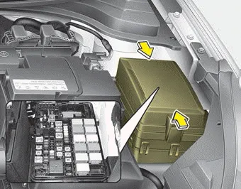 After checking the fuse panel in the engine compartment, securely install the fuse panel cover through the audible clicking sound.