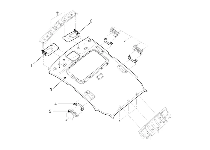 | 1. Sunvisor assembly [LH] 2. Sunvisor assembly [RH] 3. Roof trim assembly [Sunroof] |