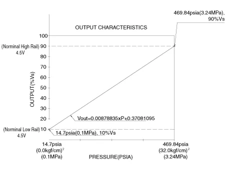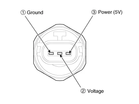 Measure the pressure of high pressure line by measuring voltage output between terminal “1” and “2”.