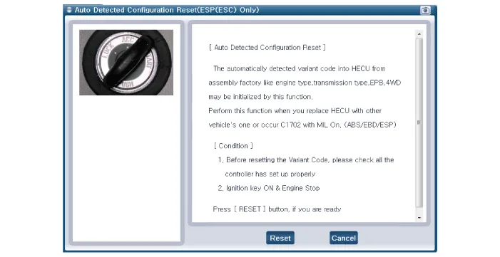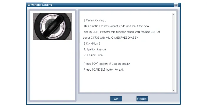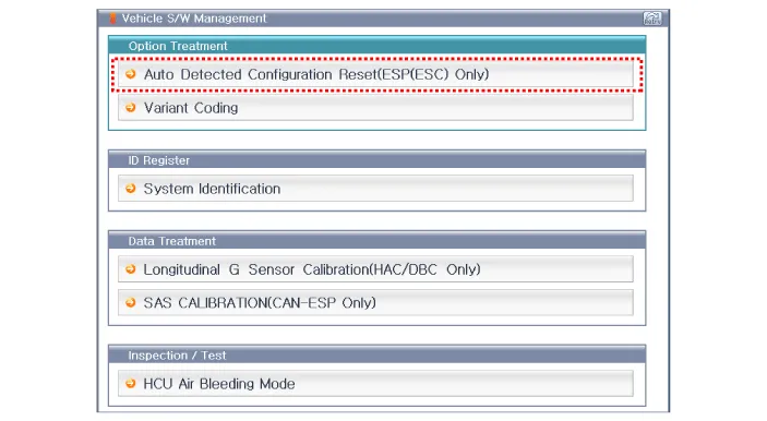 Select the "vehicle model" and "ABS/ESC" on GDS vehicle selection screen, then select OK.
