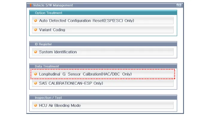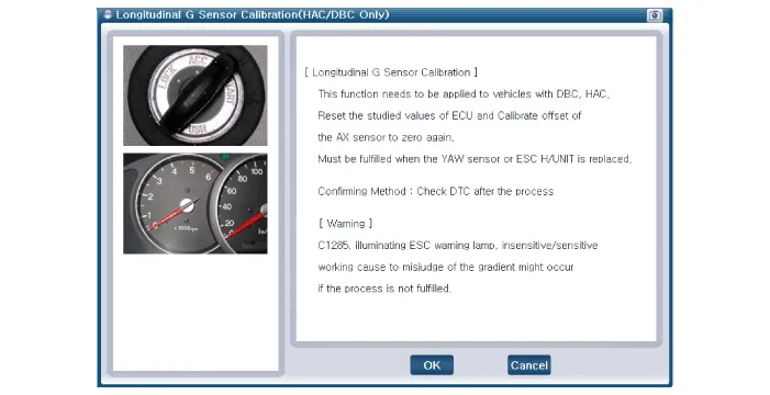 Conduct the Longitudinal G Sensor Calibration. |