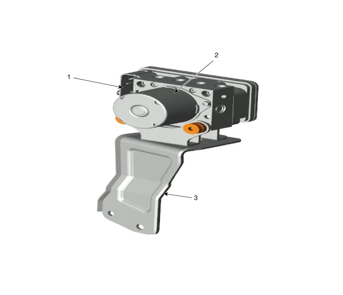 Components and components location Components 1. ABS control module 2. Front wheel speed sensor 3. Rear wheel speed sensor Description and operation Description This specification applies to HCU(Hydraulic Control Unit) and ECU(Electronic Control Unit) of the HECU.