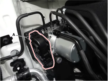 Loosen the ABS control module bracket nuts (A), and then remove the ABS control module bracket.