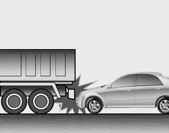 • Just before impact, drivers often brake heavily. Such heavy braking lowers the front portion of the vehicle causing it to “ride” under a vehicle with a higher ground clearance. Air bags may not inflate in this “under-ride” situation because deceleration forces that are detected by sensors may be significantly replaced by such “under-ride” collisions.