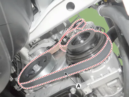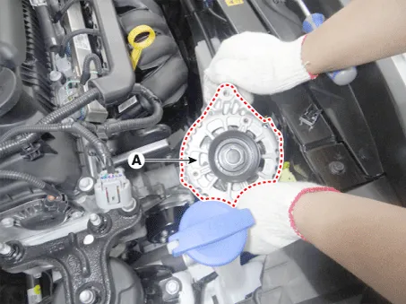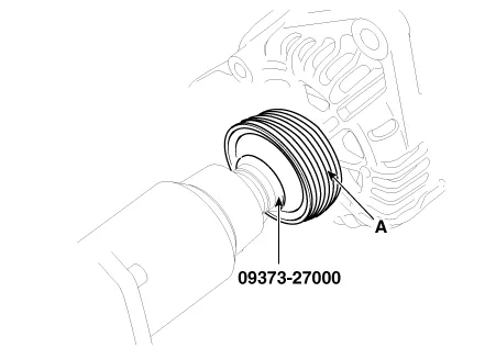 Remove the OAD(Overrunning Alternator Decoupler) pulley (A) using the special tool.