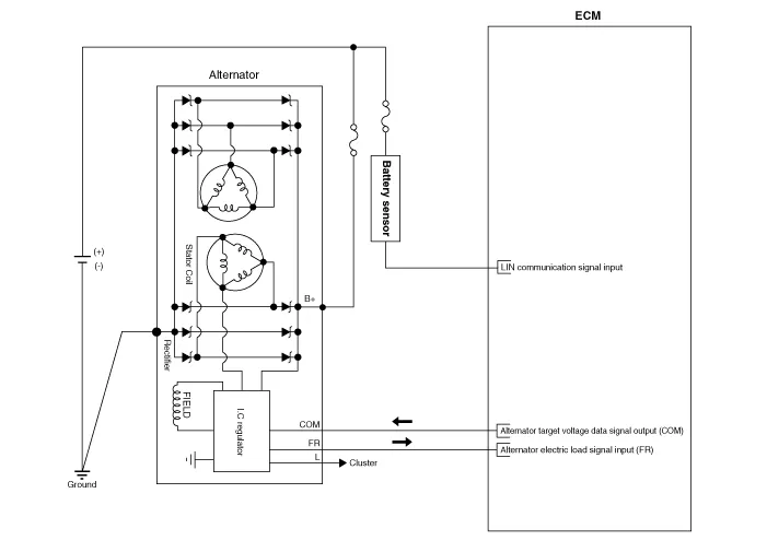 In addition, the charging voltage of this alternator is regulated by the battery voltage detection system.