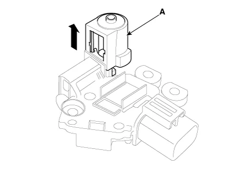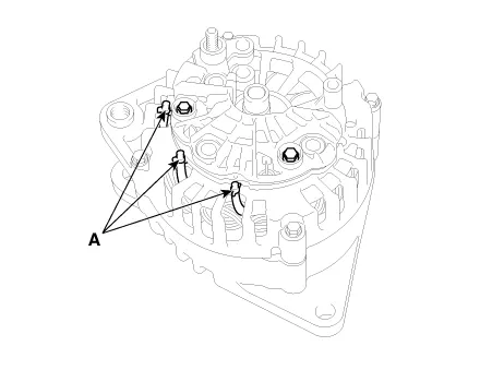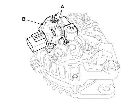Remove the mounting bolts (A) and the brush holder assembly (B).