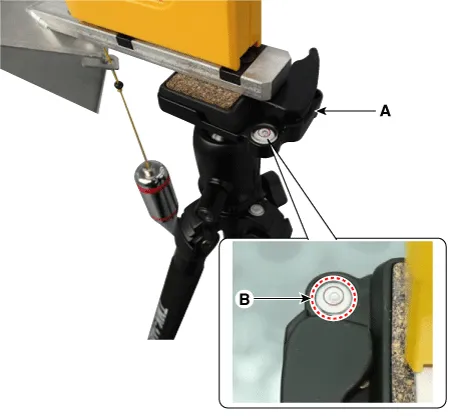 Remove the SCC Calibration Laser [SST No. : 09964-C1200] (B) from the tripod [SST No. : 09964-C1300] (A).