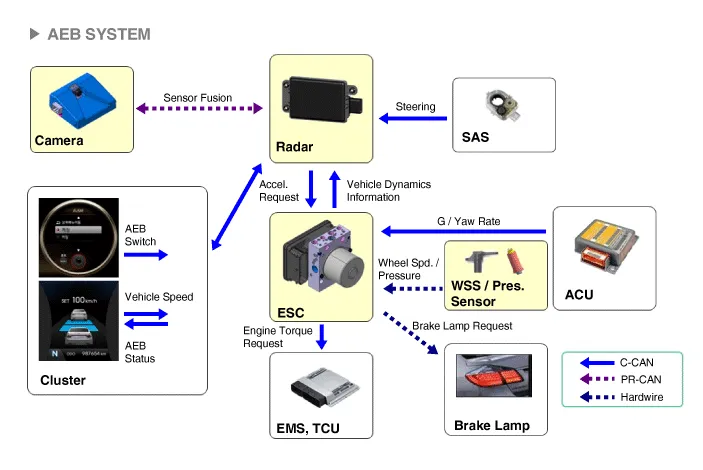 The following is the configuration of the AEB system.