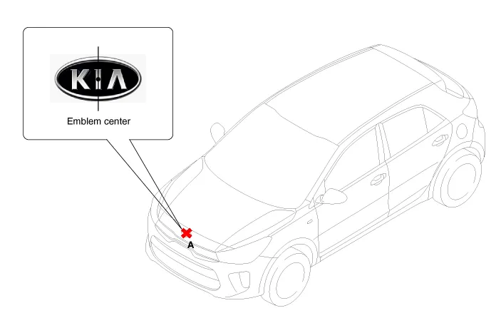 Mark the center point of emblem (A).