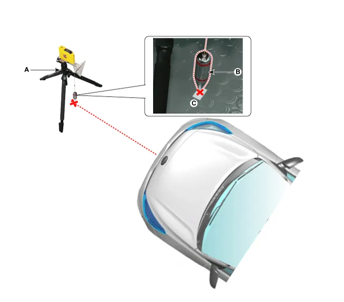 Match the vertical line of laser to (A) and (B) using the vertical/horizontal laser (C) [SST No. : 09964-C1200].