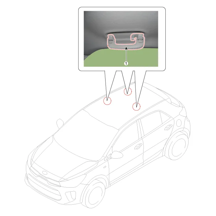 Components and components location Component Location 1. Roof Trim Assembly Repair procedures Replacement Put on gloves to protect your hands.