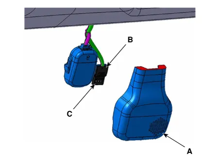 Disconnect the connector (B) and then remove the auto defogging sensor (C).