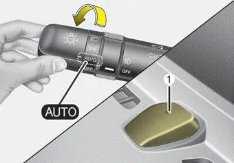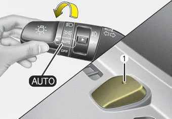 When the light switch is in the AUTO light position, the taillights and headlights will turn ON or OFF automatically depending on the amount of light outside the vehicle.