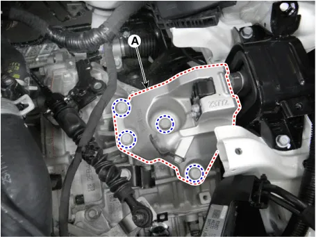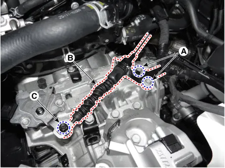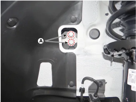 Loosen the transaxle mounting bracket bolts (A).