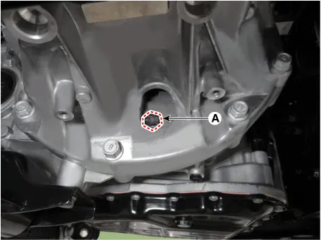 Remove the torque converter mounting bolts (A) by rotating the crankshaft.