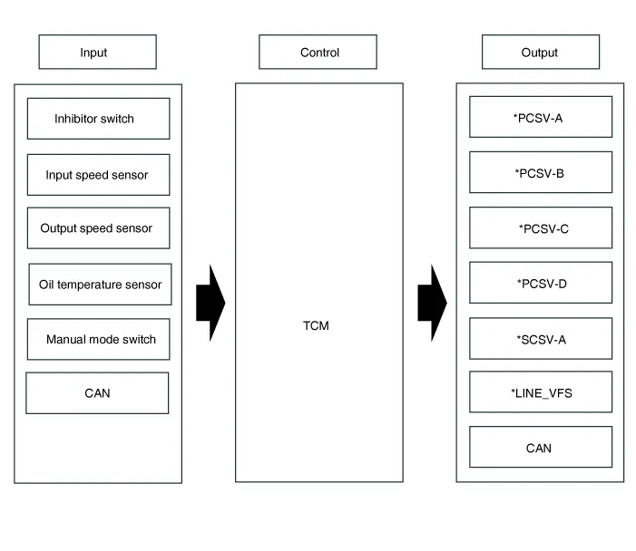Automatic transaxle control system relies on various measurements to determine the current control status and determine the necessary compensation values. These values are used to control the actuators and achieve the desired control output.