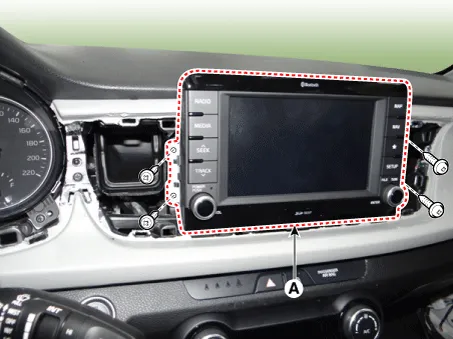 Remove the AVN head unit (A) after loosening the mounting screws.