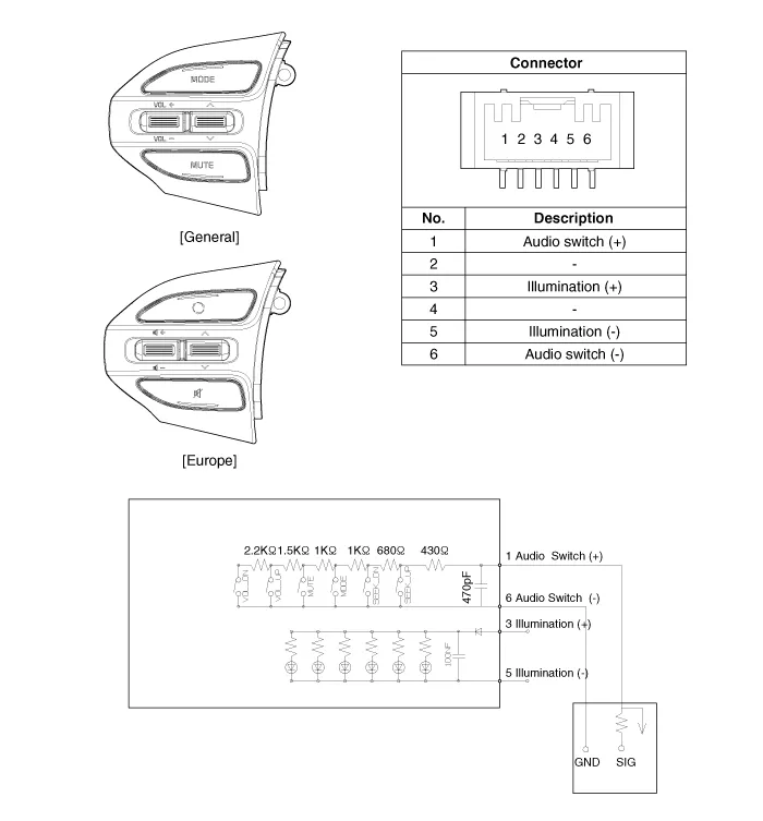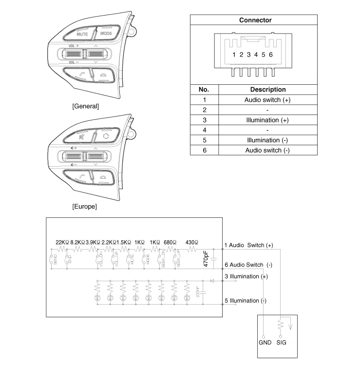 Components and components location Components Driver Power Window Switch Connector Pin Information [Front / Rear Driver Safety - Auto Up/Down] [LHD] No. Description No. Description 1 Front right power window (Up) 10