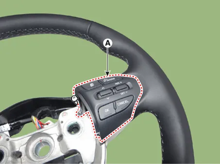 Remove the steering wheel remote control (A) after loosening the mounting screws. [LH]