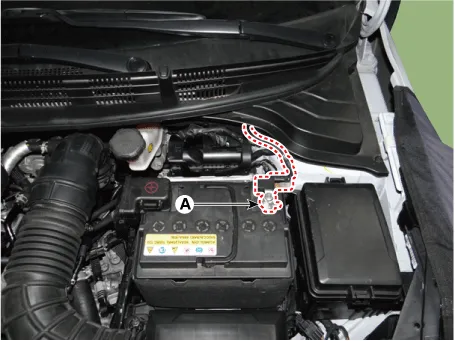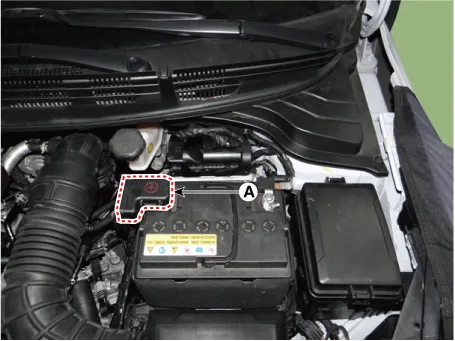 Move back and forth to check that the battery terminals (A) are loose or corroded.If the terminals are corroded, clean them.