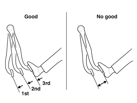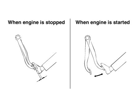 Run the engine for one to two minutes, and then stop it. If the pedal depresses fully initially but gradually becomes higher in the successive attempts, the booster is operating properly. If the pedal height remains unchanged, the booster is inoperative.