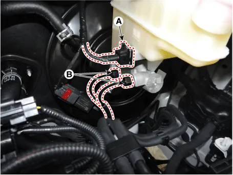 Remove the battery and battery tray. D 1.4 U2 TCI (Refer to Engine Electrical System - "Battery") G 1.0 T-GDI (Refer to Engine Electrical System - "Battery") G 1.2 MPI (Refer to Engine Electrical System - "Battery") G 1.4 MPI (Refer to Engine Electrical System - "Battery") |