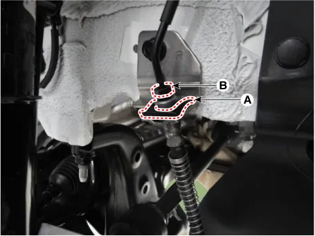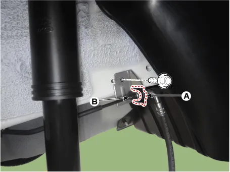 Disconnect the brake tube by loosening the tube flare nut (B).