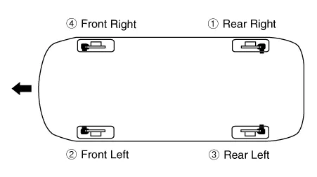Repeat the procedure for wheel in the sequence shown below until air bubbles no longer appear in the fluid.