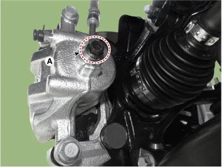Loosen the right-rear brake bleed screw (A) to allow air to escape from the system. Then tighten the bleed screw securely. Front