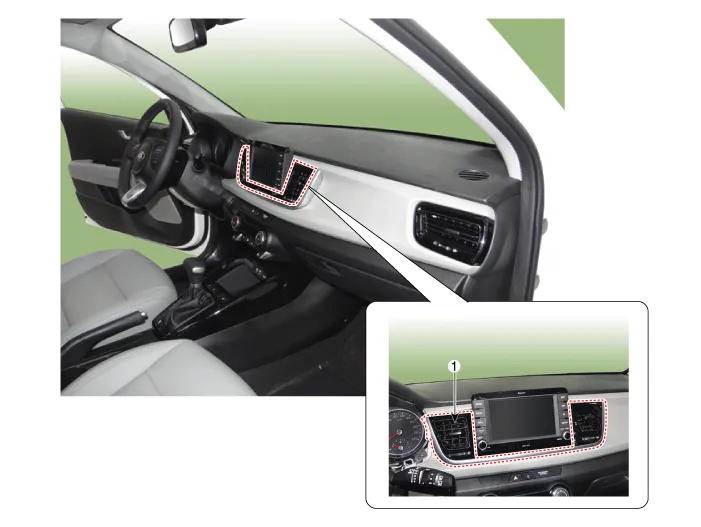 Components and components location Component Location 1. Crash pad passenger side panel assembly Repair procedures Replacement Put on gloves to protect your hands.