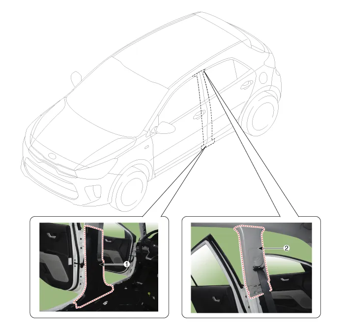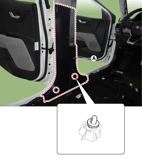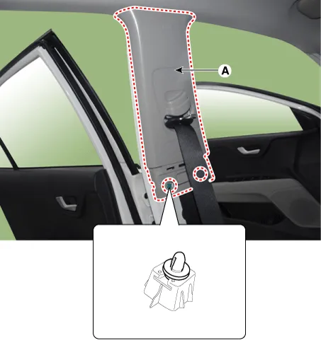 Remove the center pillar upper trim (A) after loosening the bolt.