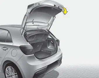Opening the liftgate The liftgate is locked or unlocked when all doors are locked or unlocked with the transmitter (or smart key) or central door lock switch.