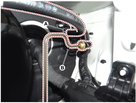 Disconnect the reservoir hose (A) and clutch tube (B) from the clutch master cylinder.