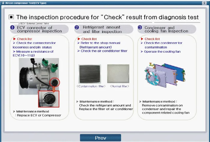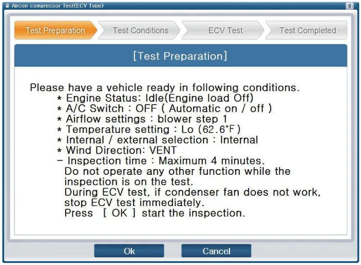 Check if other DTC codes are found before inspect ECV compressor. If so, solve that problems first. If not, press 'OK' button to continue.