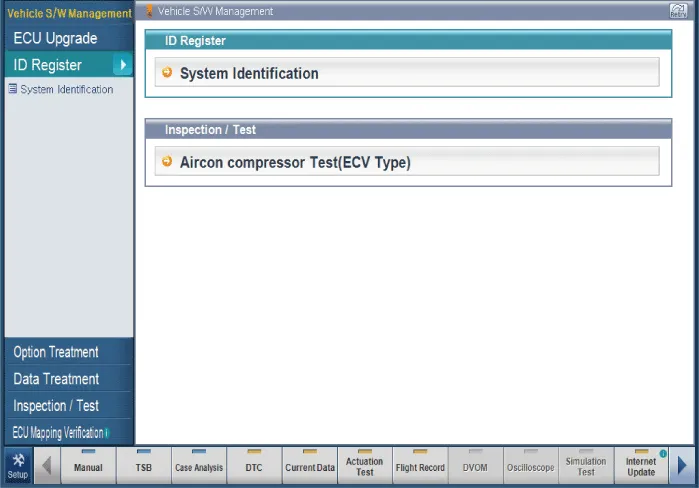 Connect GDS to the vehicle and select 'Aircon Compressor Test(ECV type)' [ECV1]