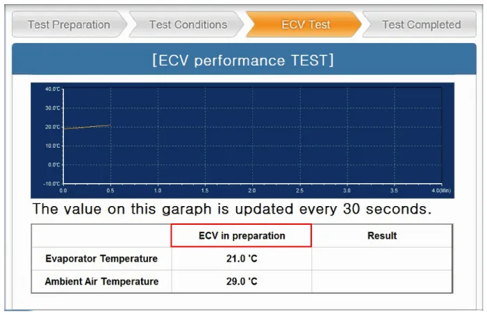 Make the vehicle ready as the GDS instruction on the monitor. (Turn off A/C 'switch' only) [ECV2]