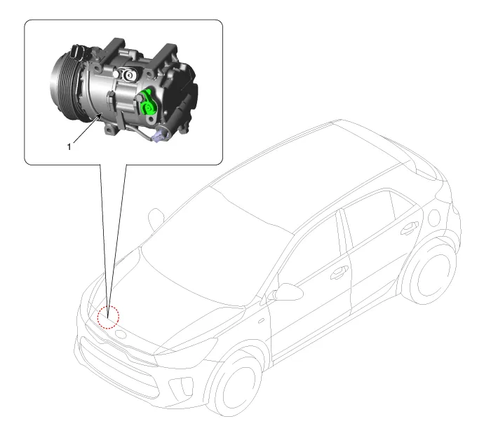 Loosen the drive belt. D 1.4 TCI-U2(Refer to Engine Mechanical System - "Drive Belt") G 1.0 T-GDI-KAPPA(Refer to Engine Mechanical System - "Drive Belt") G 1.2 MPI-KAPPA(Refer to Engine Mechanical System - "Drive Belt") G 1.4 MPI-KAPPA(Refer to Engine Mechanical System - "Drive Belt") |