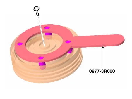 Remove the center bolt (A) and the hub bolts (B) while holding the pulley with a disc & hub assembly bolt remover (0977-3R000).