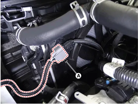 Disconnect the fan motor connector (A) from the resistor.