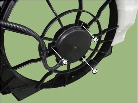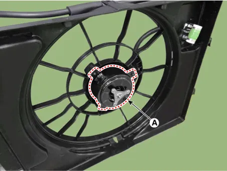 Remove the fan motor (A) from the cooling fan shroud.