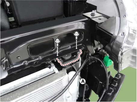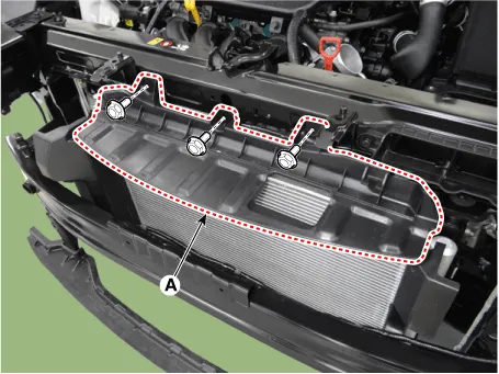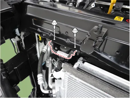 Remove the radiator upper mounting bracket (A).