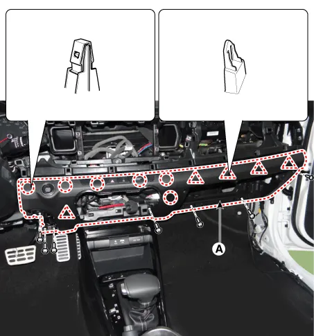 Remove the crash pad center lower panel (A) after loosening the screws.