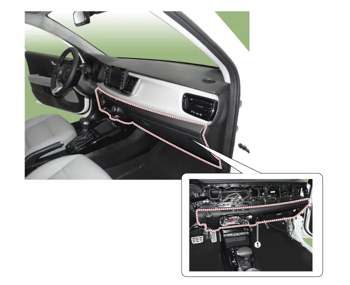 Components and components location Component Location 1. Main crash pad assembly Repair procedures Replacement Put on gloves to protect your hands.