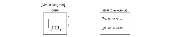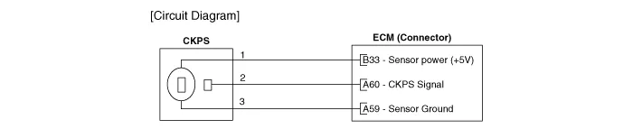 This sensor is installed in ladder frame and generates alternating current by magnetic flux field which is made by the sensor and the target wheel when the engine rotates. The target wheel consists of 58 slots and 2 missing slots on 360 CA (Crank Angle). In case of ISG, the ISG function get reliable information about crank shaft position during all modes of operation. The CKPS in ISG function ensures short restarting time for engine and efficient combustion.