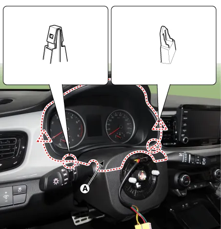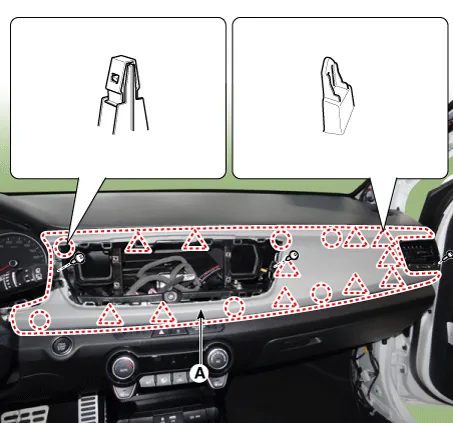 Remove the crash pad side cover [RH] (A) by using a remover.