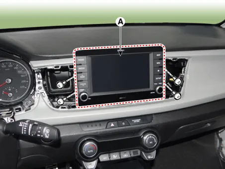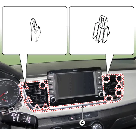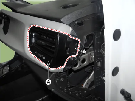 Remove the crash pad passenger side panel (A) after loosening the mounting screws.