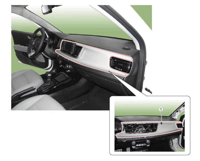 Components and components location Component Location 1. Crash pad lower panel Repair procedures Replacement Put on gloves to protect your hands.